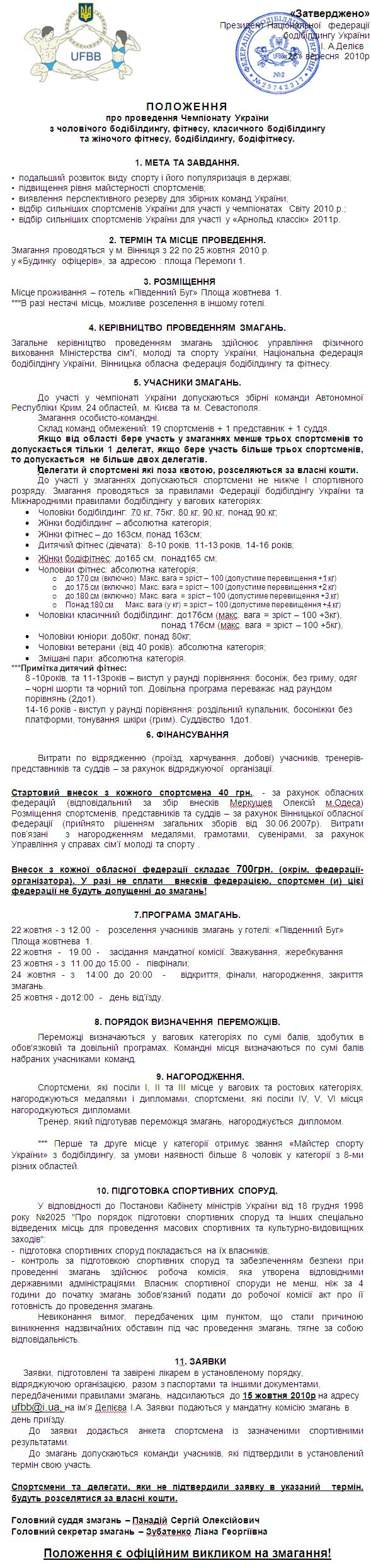 ПОЛОЖЕНИЕ о проведении Чемпионата Украины по мужскому бодибилдингу, фитнесу, классическому бодибилдингу и женскому фитнесу, бодибилдингу, бодифитнесу.