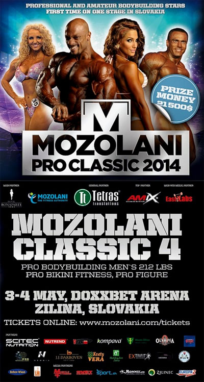 Официальные списки спортсменов на турнире IFBB Mozolani Pro Classic 2014: