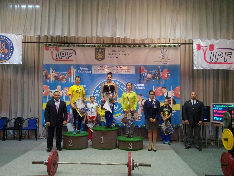 На помосте после приседания лидерство захватила Маргарита Литвинюк из Симферополя, присев 112,5 кг, второй была Наталия Дидюк из Харькова с результатом 102,5 кг, Яна присела 95 кг (97,5 осилить не смогла). Эти девушки и продолжили борьбу за медали.