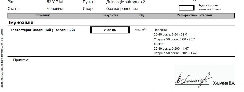 У Синево предел измерения тестостерона общего 52 нмоль\л. Я обычно сдаю в Инвитро, там хотя бы 120. Герыч, ты? )) -------------------- Я не здамся без бою
