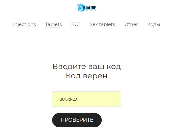 Подскажите адрес сайта по которому можно проверить продукцию BioLine Innovation На данный момент сайт доделывается, а если вас интересует вопрос оригинальности, то на таблетированной продукции есть коды, если речь о инъекционных препаратах, то в случае сомнений напишите в ЛС, разберемся. -------------------- Официальный магазин - "BioLINE Innovation"