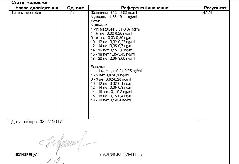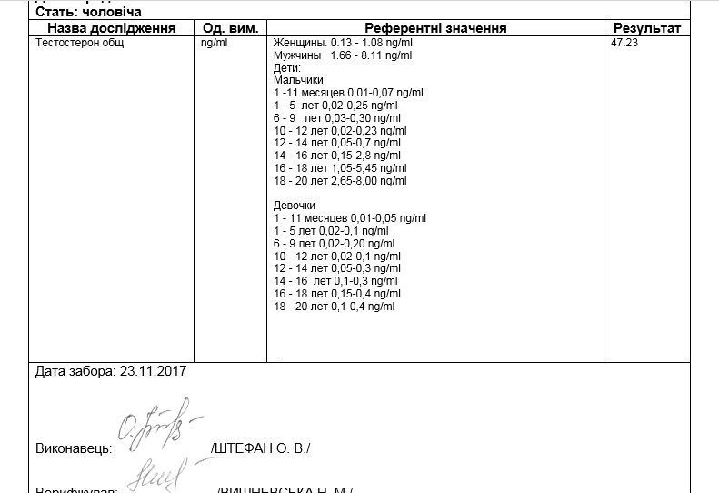 результаты анализов общего тестостерона с Днепролаб в ноябре-декабре 2017г: |