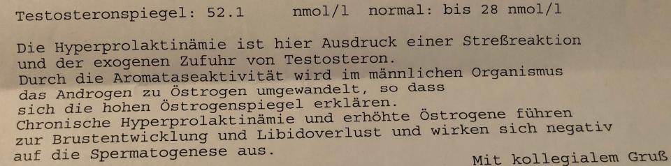 1. не матерись на форуме что ты колешь? пустышку? ничего не прекращай сейчас назови анастразол сколько там в табе назови энка чья за эмоции извиняюсь, просто я скинул анализы своему тренеру и он сказал что видимо у меня заболевание какое-то и он не не знает что делать :) енка у меня Swiss Remedies, в анастрозоле по 1 мг в таблетке, я уже выпил 10 штук, в понедельник с утра еду сдавать анализы снова, хочу посмотреть что после 10 таблеток поменялось, и в этот раз буду сдавать с утра натощак как минимум попросил у тренера еще подогнать мне пару блистеров анастазы Роста во мне 181 см, вес 95, процент жира 15-20 думаю. Забыл добавить что весь этот экшн происходит в германии Дай фото , будущий выступающий ) фотографии добавил как прикрепленку Андрейка, ты бы данных побольше выкатил - ну там рост, вес, процент жира, а то может ты ростом 150 см и весишь 50 кило, потому и запредельная для тебя дозировка теста ) или наоборот, ты очень жирный, ароматазы вагон и всё люто ароматизируется... Ну и твоей лаборатории референсные значения показателей угадывать, что ли? всё добавил в сообщении этом Ребята заранее прошу прощения за головную боль которую я тут вам приношу, но просто я залез в огромную яму и нужна Ваша помощь чтобы из нее вылезти