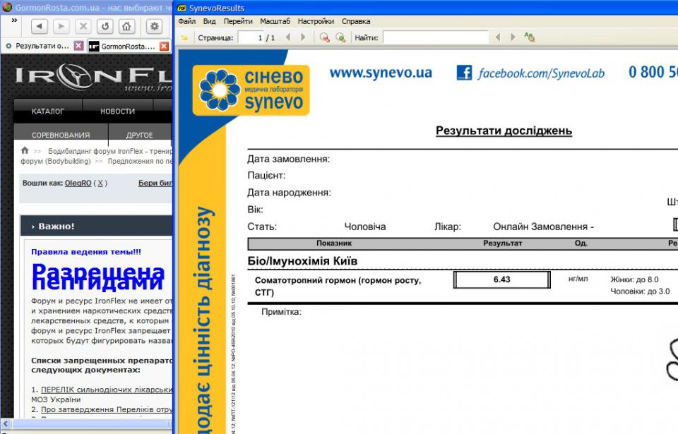 Результаты по анализам аптечного "Растана" я выкладывал в теме "Соматин BIOFARMA, Гормон роста украинского производства", а тут товарищ сдал после NOVARTIS-BIO. Сдавал через 4 часа 5 ед. На всякий случай, вдруг кто позарится купить.