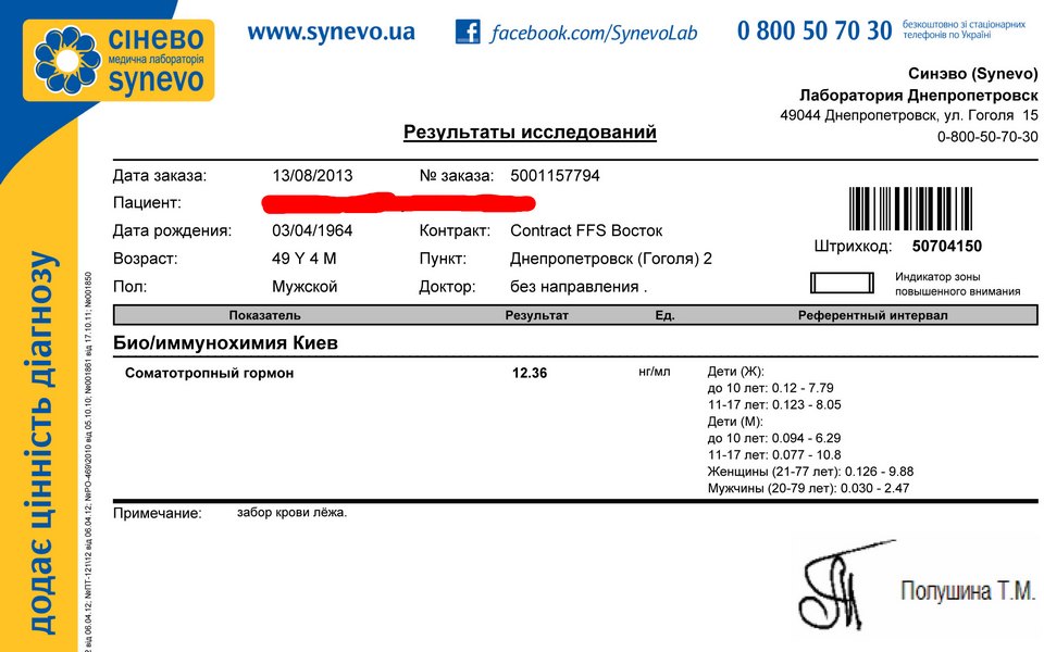 Результат анализов. Хайгетропин 8 МЕ. Через 3 часа после инжекта.