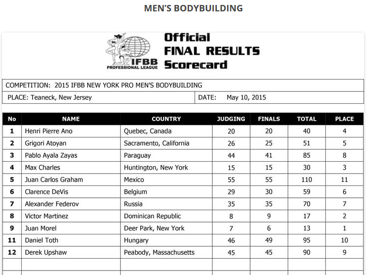 ➜ Результаты турнира 2015 New York Pro в весовой категории "до 212 фунтов":