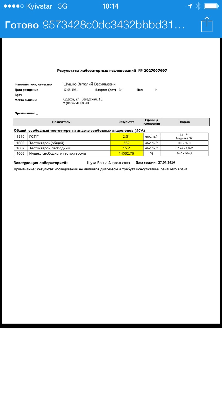 это лучшая лаба в городе Лео, машинка там сименс крутая стоит, только либо не настроена под высокий тест, либо материалы для развода крови не оригинальные закупают, также возможно, что по таблице коэффициентов тычут-------------------- |