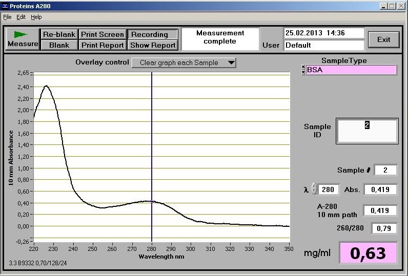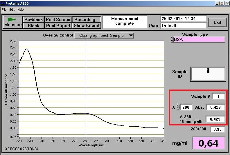 Смотри, на 1 скрине нужные данные обведены красным. Это оптическая плотность твоей пробы. Разведение пробы 0.5 мг/мл. Обычный белок должен давать при таком разведение 0.5 OD. проба показала 0.429 OD. Это 85,8% от нормы, тоесть белка в твоей пробе 85,8%. На нижнюю цифру не смотри - это относительно БСА, а у него оптическая плотность намного ниже. На втором скрине данные того белка, что ты мне продал, там получается 83,8 концентрация белка