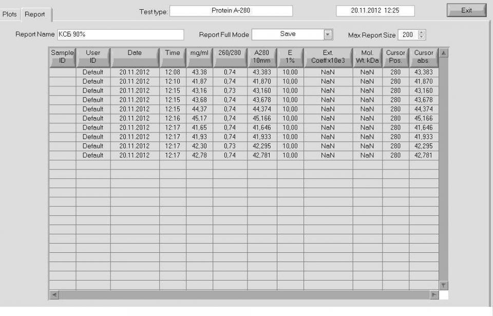 Костя извени по аспирантуре напрягали жестко, не как руки не доходили. Вот отправляю тебе то что есть. Я отмерял 50 мг ксб и разводил в 1 мл воды, та концентрация которую показал прибор, нужно делить на 50 и умножать на 100%, и ты получишь концентрацию белка в сухом ксб.