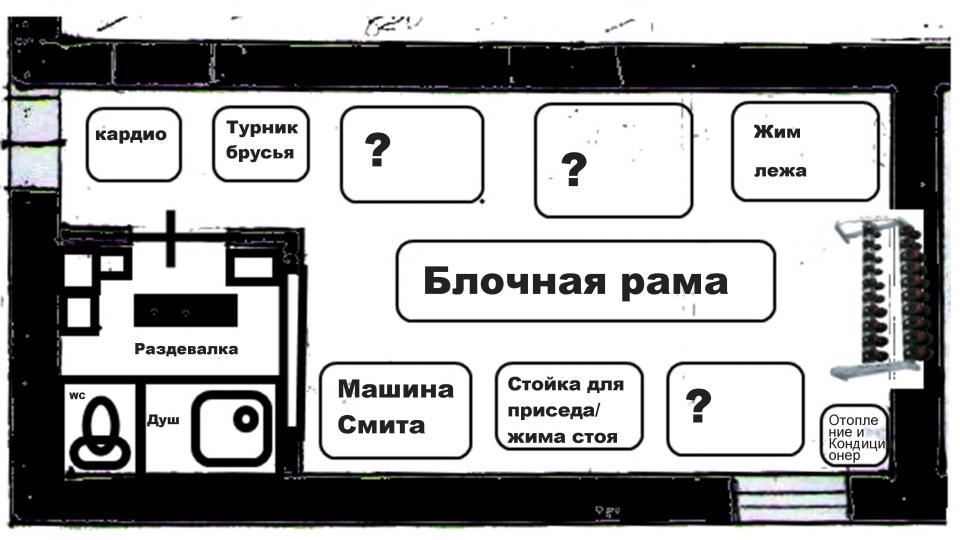 надо учитывать месторасположение помещения, если на отшибе города, то можно прогореть, 43 малый метраж, и девчачьи тренажёры типа сведений-разведений, гак, вело можно смело в топку выкидывать, для груди лучше хаммер, эти бабочки никому не нужны, зал похож на качалку для увлечённых, поэтому не надо мусора нагребать
