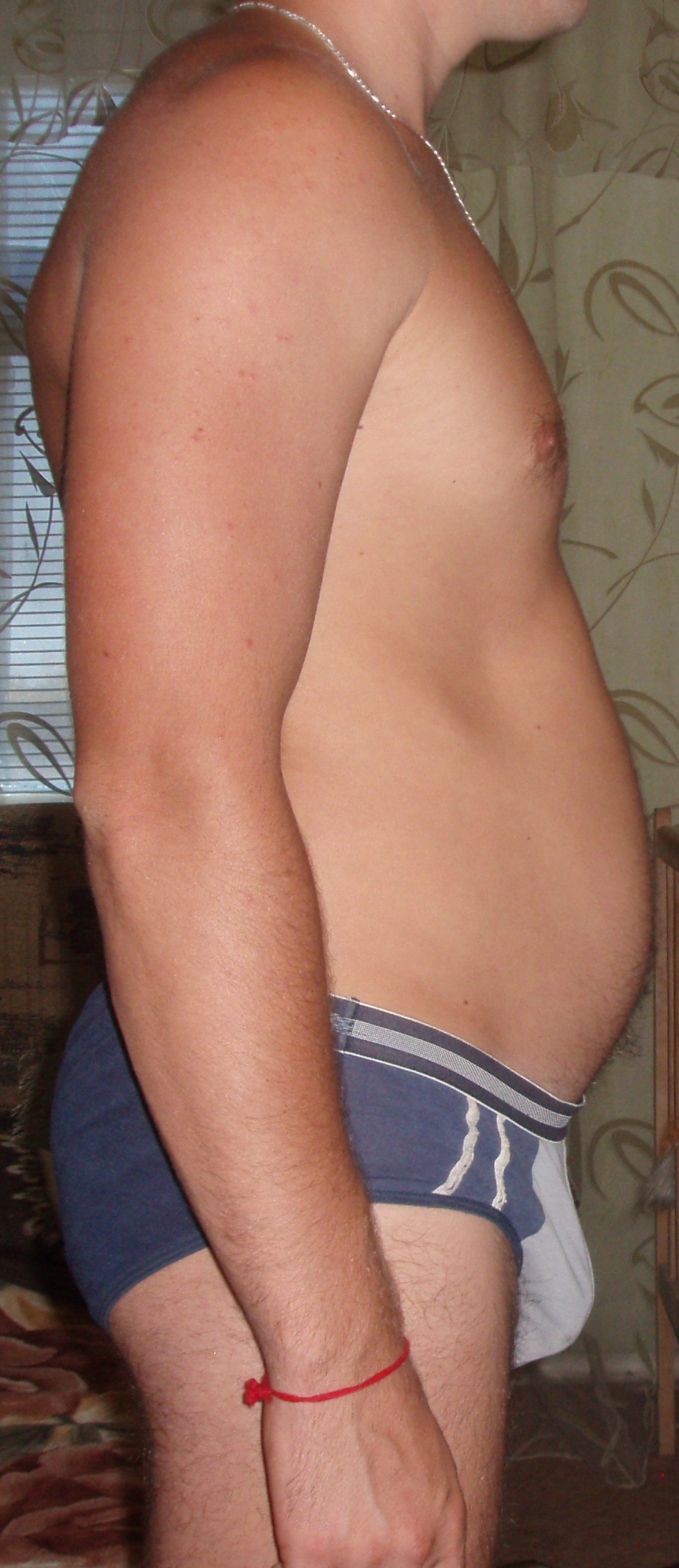 Рост - 176.5 Вес - 75 Длина туловищя - 47 Длина бедра - 39 Длина большой бедровой кости - 41 Акромиальная ширина - 36 Подвздошная ширина - 30 Окружность талии - 94 Окружность бёдер по жопе - 95 Окружность бёдер - 86 Окружность таза - 94 Голени - 36 Окружность груди - 109 Бицепс -35 Окружность предплечья - 31 Запястье - 19 Лодышки - 23 Тренеруюсь через день: Турник 5х10 Брусья 5х15 Ноги не качаю, незнаю почему, тренеруюсь дома так как до ближайшего спортзала дорого добератса, ем все подряд особого питания нет - ем вредно и вкусно, полезное редко)))) Проблемные участки это живот и ноги ну ноги это такое поприседать и на носочки это ясно, а вот как убрать жир на животе это? Вот мое фото: Пара вопросиков: 1.-Какой мой Соматотип? 2. - Какой мой процент жира? 3.- И это может не по теме, но может все же кто небудь чем поможет, подскажите ещё какие упражнения я могу включить для тренировок дома, есть турник и брусья! Всем спасибо за внимание если вдруг что не так извените новичек!))) -------------------- ;)VeTeR+oK;)