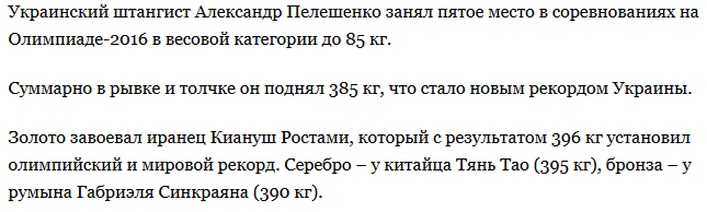 рывок 3-я попытка 175 Я тебя опережу. 210 первая попытка провалена. А взял со второй =) Пока первый по сумме. Ха и сразу румын догнал его в ровень -------------------- __________________