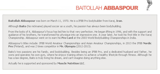 а на сайте musculardevelopment - 1970 По той ссылке что я привел написано что он начал качацо в 96м. Обычно многие начинают качацо в 17-18 лет. Вроде совпадает. Да и выглядит он на фото как "до 40". Обычно профи выглядят старше своего возраста. Еслиб ему было 45 он бы выглядел значительно старше мне кажется. -------------------- Верховный Трололарх всея Айронфлексии |