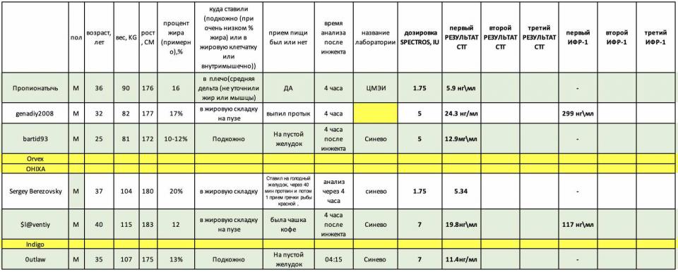 более объективно будет конечно после 2го и еще больше 3го. в ЛС не надо слать никаких сообщений, очень не удобно открывать каждое сообщение. тут куда практичнее прокручивать на половине экрана и в другой половине вносить измения в файл. если есть какие-то очень личные сообщения, например как адрес отравки или еще что, либо на сайт или на имейл. да, очень не хотелось бы много сообщений, сейчас уже немного проще, наглядно видно что мы хотели бы увидеть по этой таблице. и хотелось бы более информативные ответы. например "была чашка кофе" кофе может быть очень разным и 30мл черного и 0.5 литра латте. и тп после этого конкурса, если все пройдет ровно и информативно есть идея взять хотябы одного адекватного форумчанина, который целенаправлено тренируется на спонсорство по фарме ( ГР + фарма + пептиды, тоже планируем добавить) чтобы открыл свою тему и вел ( или вела)