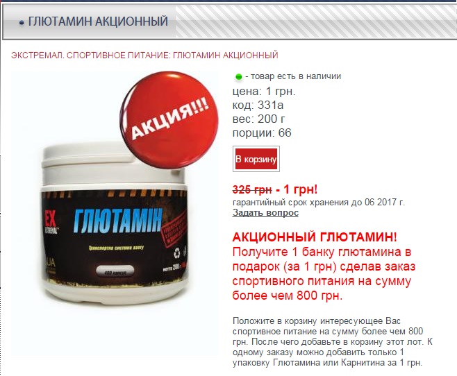 Охренеть и не встать.200 грамм глютамина 325 грн.Вот это номер((((Похлеще чем у Майпрота.