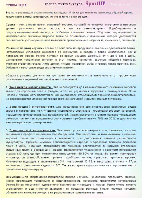 Можно к вам записаться на бесплатную тренировочку для ознакомления с мэтодикой сушки ? Ой, и сразу один вопросик хочу задать. А че это, только у любителей, в случае превышения длительности сушки более 4 недель, возникает всякая там зашлакованность, токсикация органоизма продуктами распада белков ? Билдерам-профи можно этого не бояться, они особые ? Эта их особенность случайно не связана с использованием оными фармакологии ? |