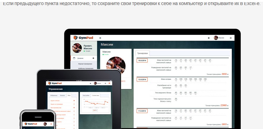 http://fitdiary.ucoz.ru/ 2 Электронный дневник IRoNDooM http://irondoom.ru/ 3 Электронный дневник тренировок для бодибилдинга 4 Дневник тренировок для силовиков http://www.powerliftingru.narod.ru/Vozmoznosti.html 5 Универсальный дневник тренировок http://tfk.bsu.ru/index.php 6 Дневник тренировок и персональный тренер MyTrainer (под iOS) https://itunes.apple.com/ru/app/mytrainer/id895839368 7 GymBoom - мобильный дневник тренировок (под Android) https://play.google.com/store/apps/details?id=net.gymboom 8 Дневник тренировок Note4fit free - дневник тренировок (под Android) https://play.google.com/store/apps/details?...te4fit.app_free 9 Muscle Strategy - мобильный дневник тренировок Android OS https://play.google.com/store/apps/details?....musclestrategy 10 GymApp - дневник тренировок для Android OS 3.2+ https://play.google.com/store/apps/details?...adhocapp.gymapp 11 Online дневники 11.1 Fitmus.com http://fitmus.com/ 11.2 Online дневник тренировок Bodybuilding-Progress.ru http://bodybuilding-progress.ru/ 11.3 Сервис JustTrain.ru http://justtrain.ru/ 11.4 Online дневник тренировок iWorklog.ru http://iworklog.ru/ 11.5 Online дневник тренировок GymPad.ru http://www.gympad.ru/ честно свищено с вики -------------------- |