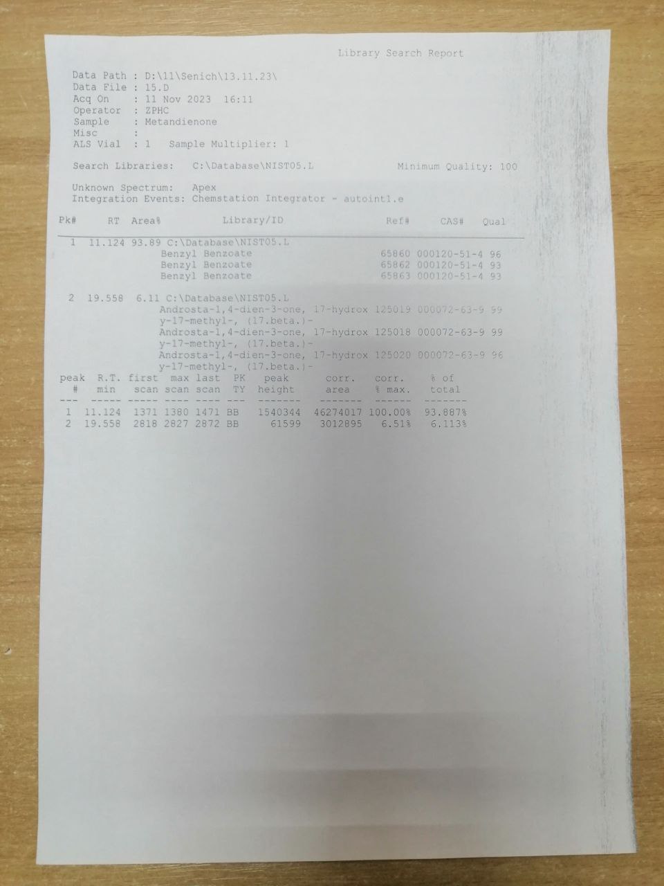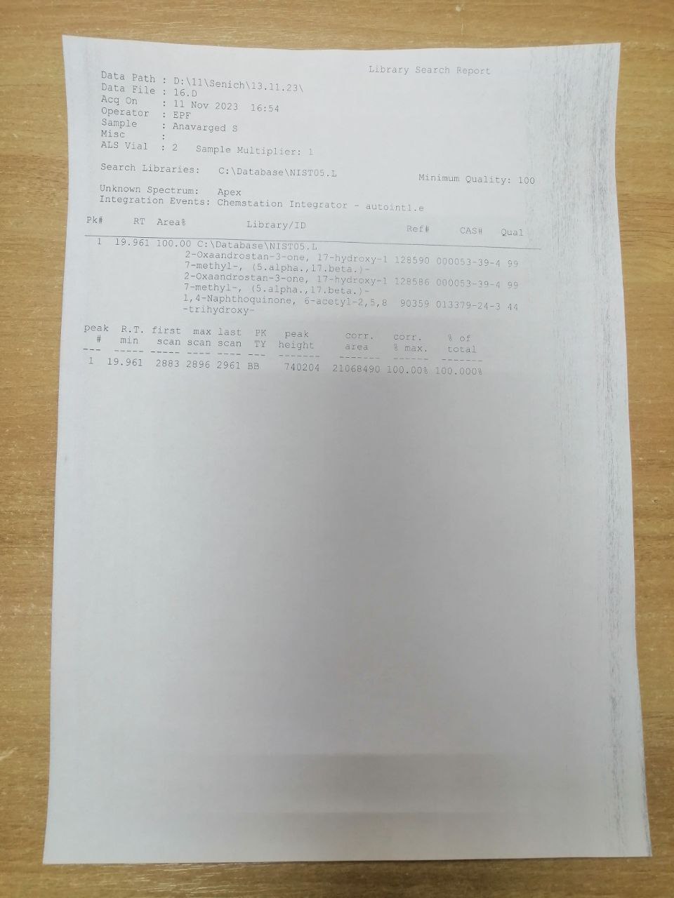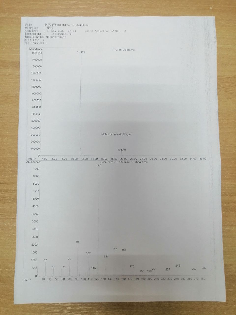 bartid93 Опубликовано 20 ноября, 2023 Автор Опубликовано 20 ноября, 2023 «Zhengzhou Pharmaceuticals” METHANDIENONE Batch No: CV054382 Образец представляет собой виалу объёмом 10мл. В которых ДВ Метандиенон. заявлено 50mg/ml. 1) Хроматография: образец содержит Метандиенон. 2) Масс-спектрометрия: содержание ДВ в образце ~49.6мг/мл. 3)Посторонние примеси: НЕ ОБНАРУЖЕНЫ.