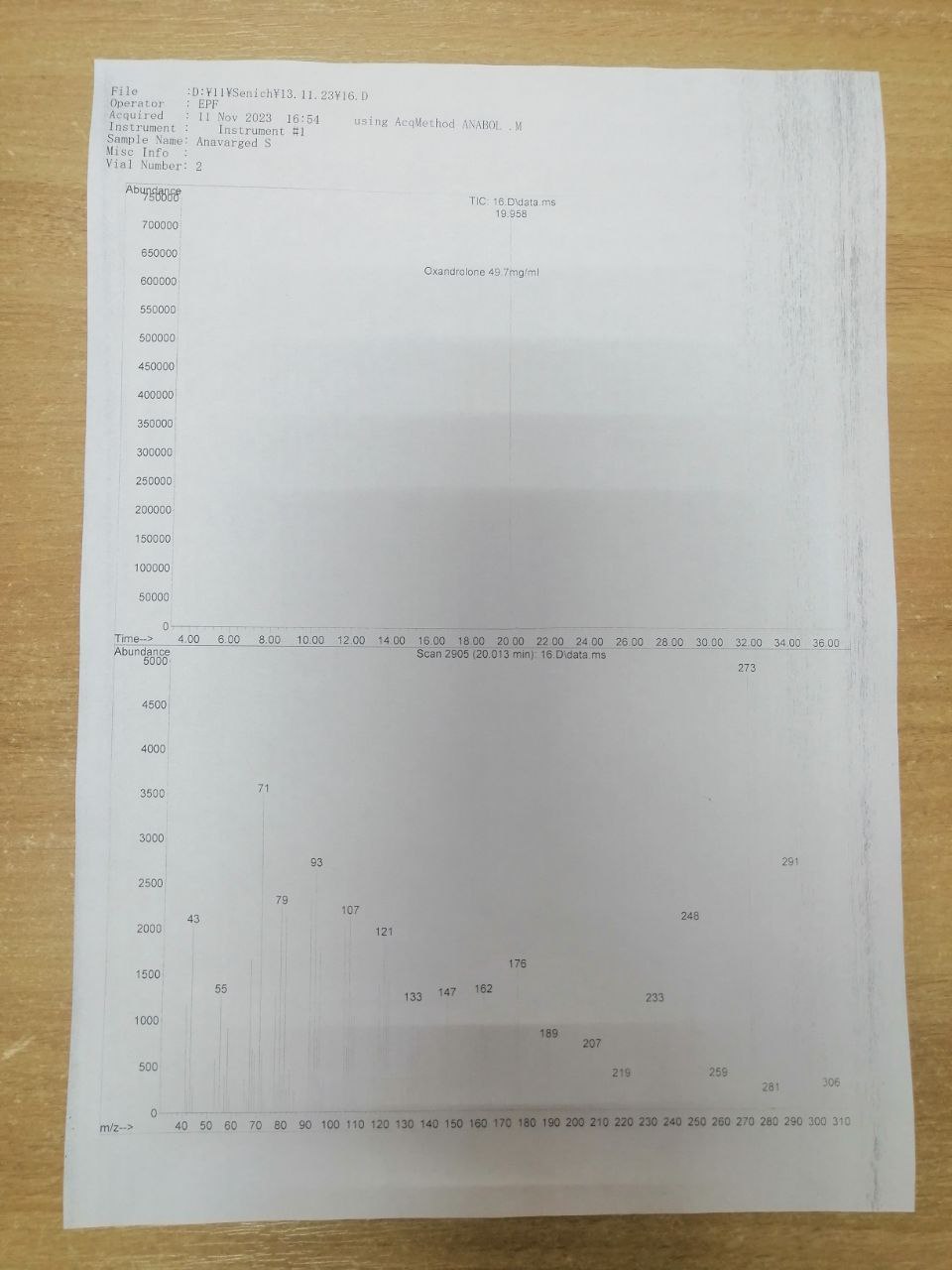 bartid93 Опубликовано 20 ноября, 2023 Автор Опубликовано 20 ноября, 2023 «Euro Prime Pharmaceuticals” ANAVARGED S Batch No: SW0544282B Образец представляет собой виалу объёмом 10мл. В которой ДВ Оксандролон микронизированный заявлено 50mg/ml. 1) Хроматография: образец содержит Оксандролон. 2) Масс-спектрометрия: содержание ДВ в образце ~49.7мг/мл. 3)Посторонние примеси: НЕ ОБНАРУЖЕНЫ.