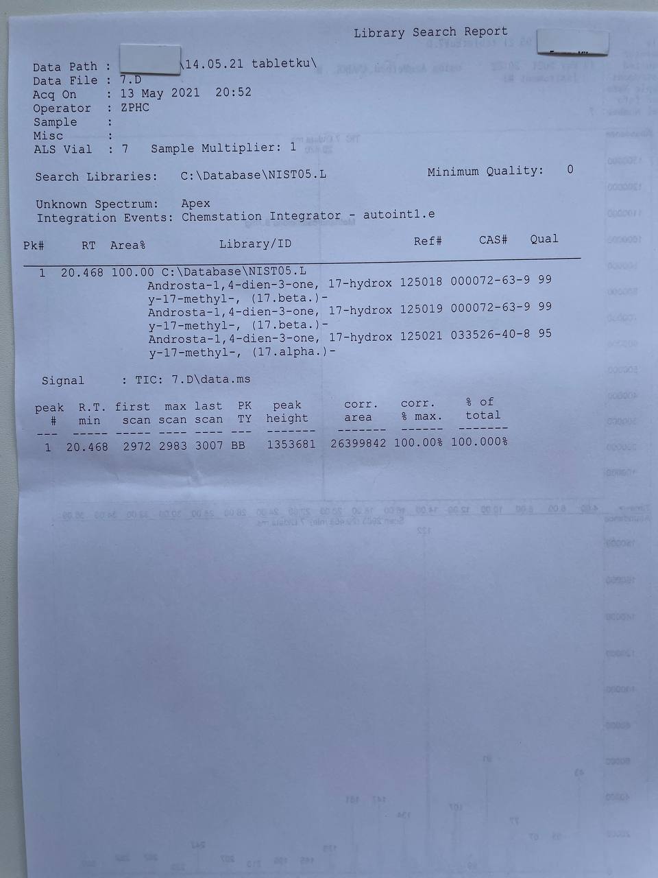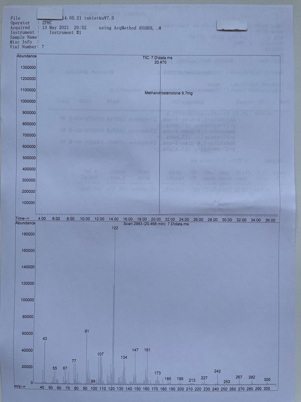 bartid93 Опубликовано 18 мая, 2021 Автор Опубликовано 18 мая, 2021 «Zhengzhou Pharmaceuticals” METHANDIENONE Образец представляет собой таблетки розового цвета. В которых ДВ Метандиенон заявлено 10мг/таб. 1) Хроматография: образец содержит Meтандиенон. 2) Масс-спектрометрия: содержание ДВ в образце ~9.7мг/таб. 3)Посторонние примеси: НЕ ОБНАРУЖЕНЫ.