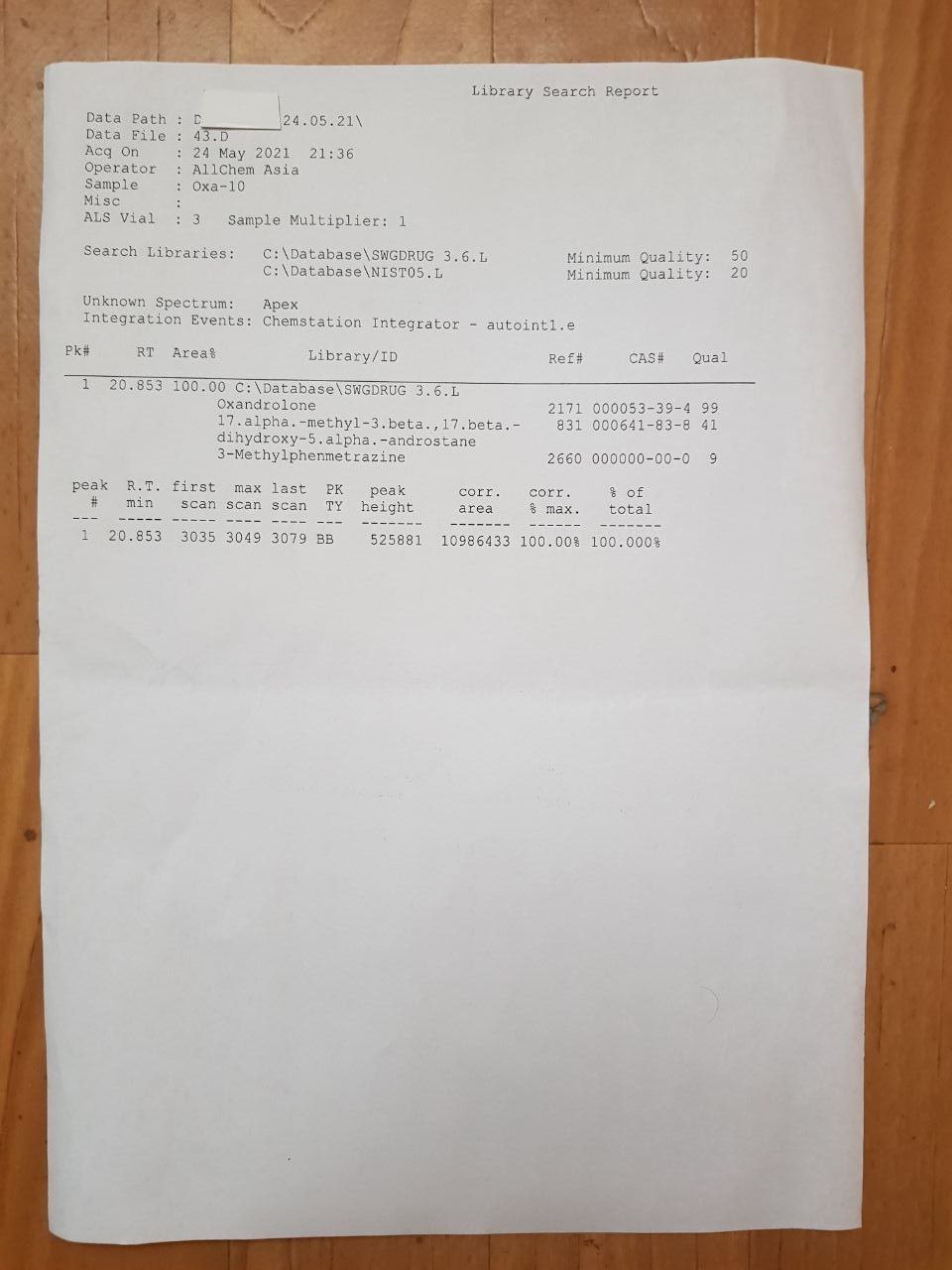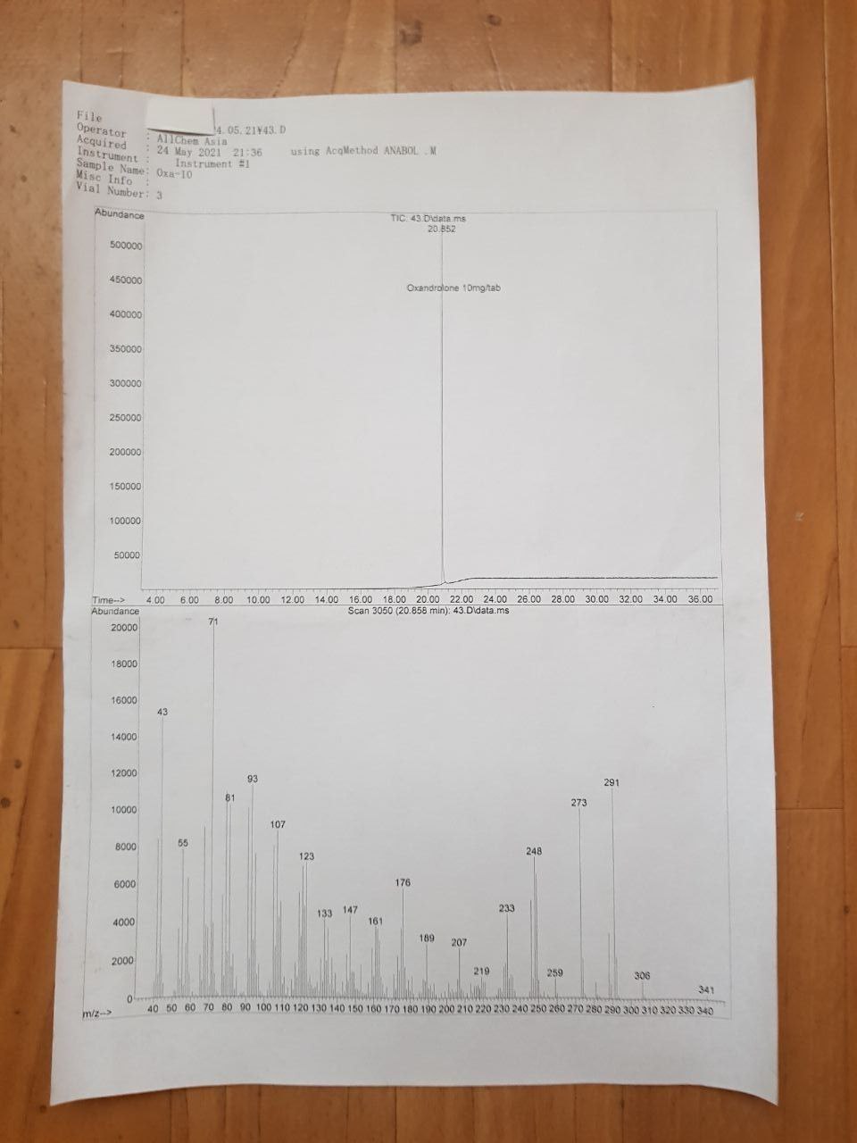bartid93 Опубликовано 24 июня, 2021 Автор Опубликовано 24 июня, 2021 “AllChem Asia” OXА-10 Образец представляет собой таблетки белого цвета. В которых ДВ Оксандролон 10мг/таб. 1) Хроматография: образец содержит Оксандролон. 2) Масс-спектрометрия: содержание ДВ в образце ~10мг/таб. 3) Посторонние примеси: НЕ ОБНАРУЖЕНЫ.