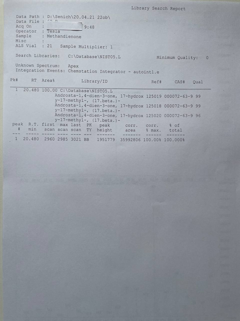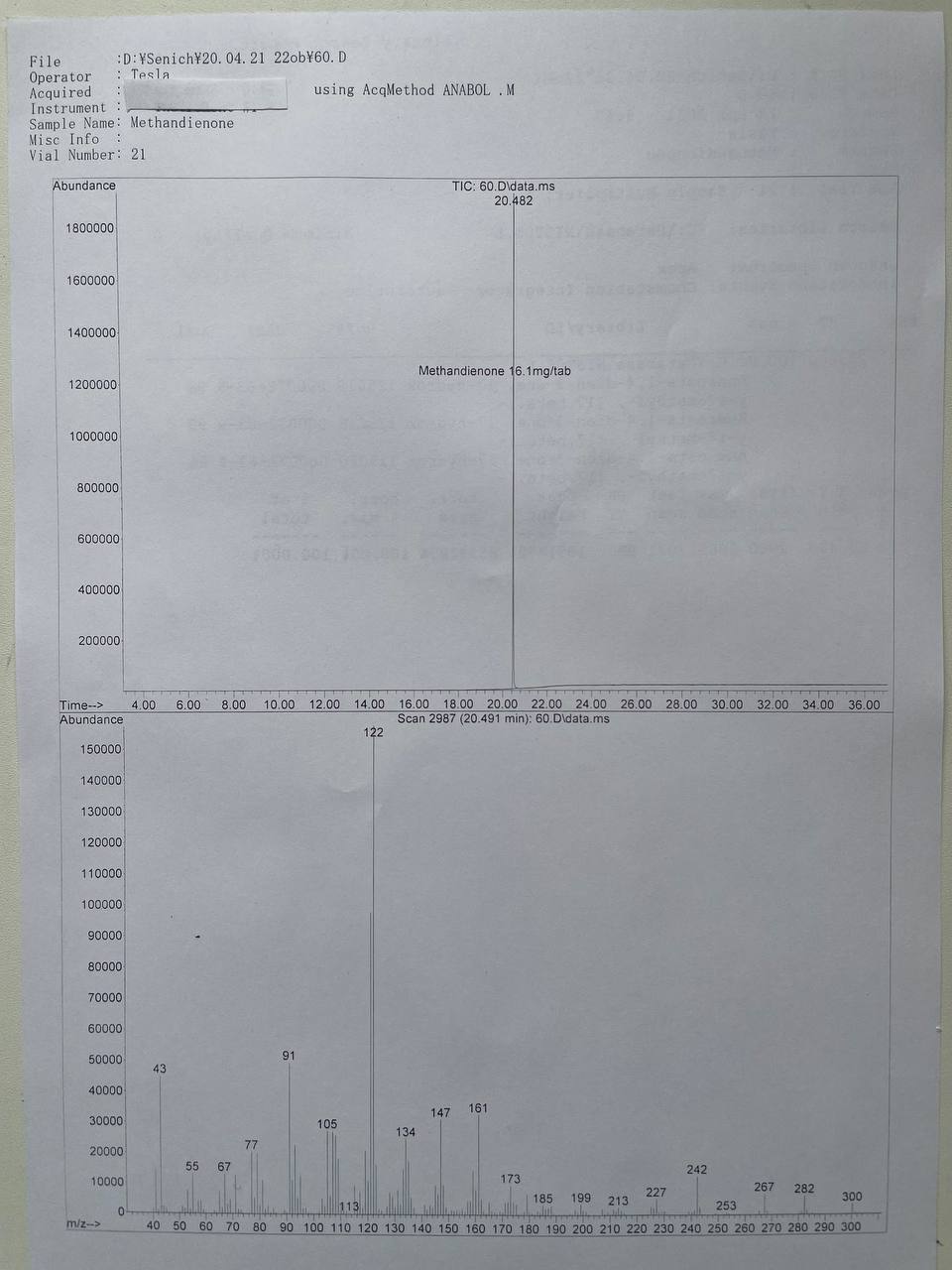bartid93 Опубликовано 24 декабря, 2021 Автор Опубликовано 24 декабря, 2021 «Tesla» METHANDIENONE Lot: 86515 Образец представляет собой таблетки белого цвета. В которых ДВ Метандиенон заявлено 20мг/таб. 1) Хроматография: образец содержит Метандиенон. 2) Масс-спектрометрия: содержание ДВ в образце ~16.1мг/таб. 3)Посторонние примеси: НЕ ОБНАРУЖЕНЫ.