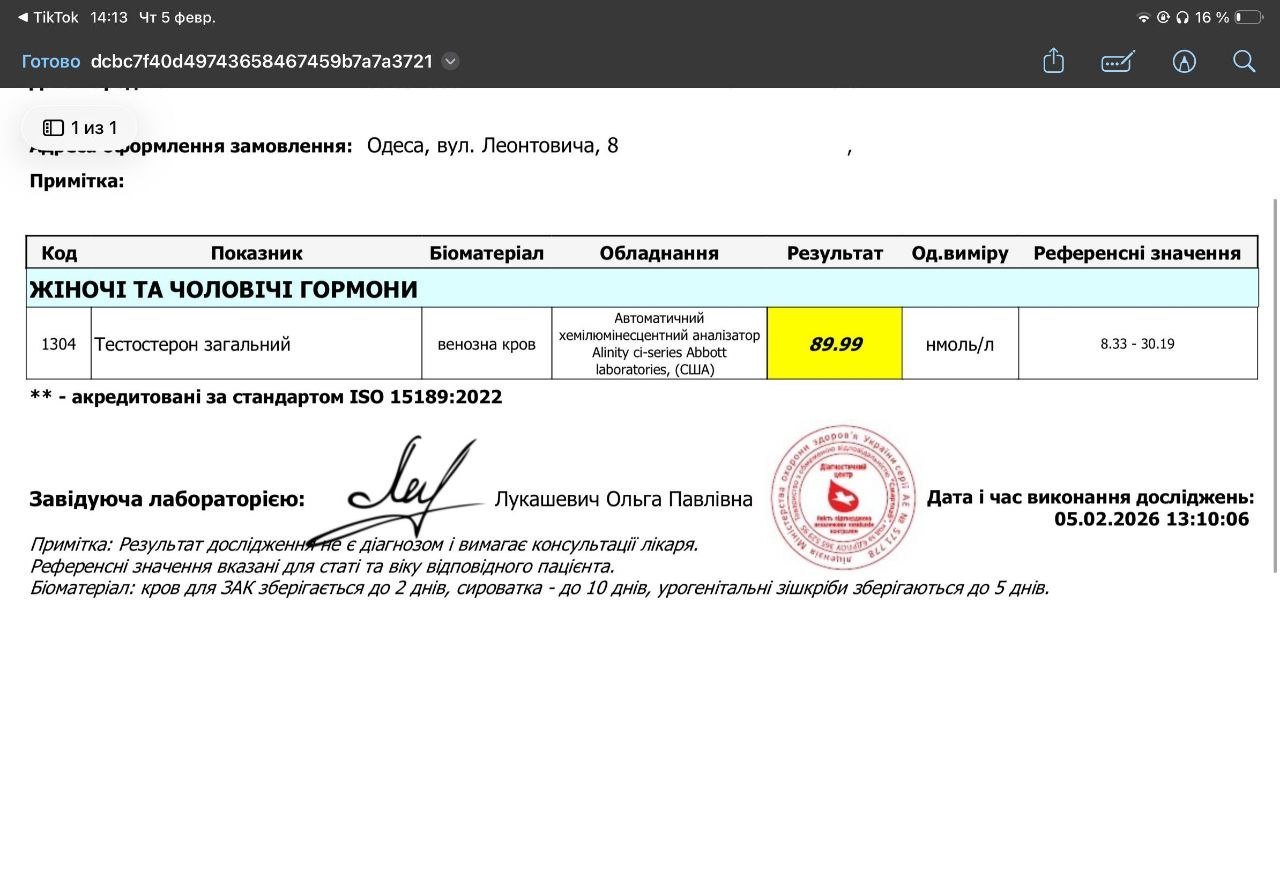 Золотая башка Опубліковано: 18 годин тому Опубліковано: 18 годин тому ❗АНАЛИЗ НА АНДРОБОЛ(СУСТ) ГУРУ 89.99нмоль/л❗️