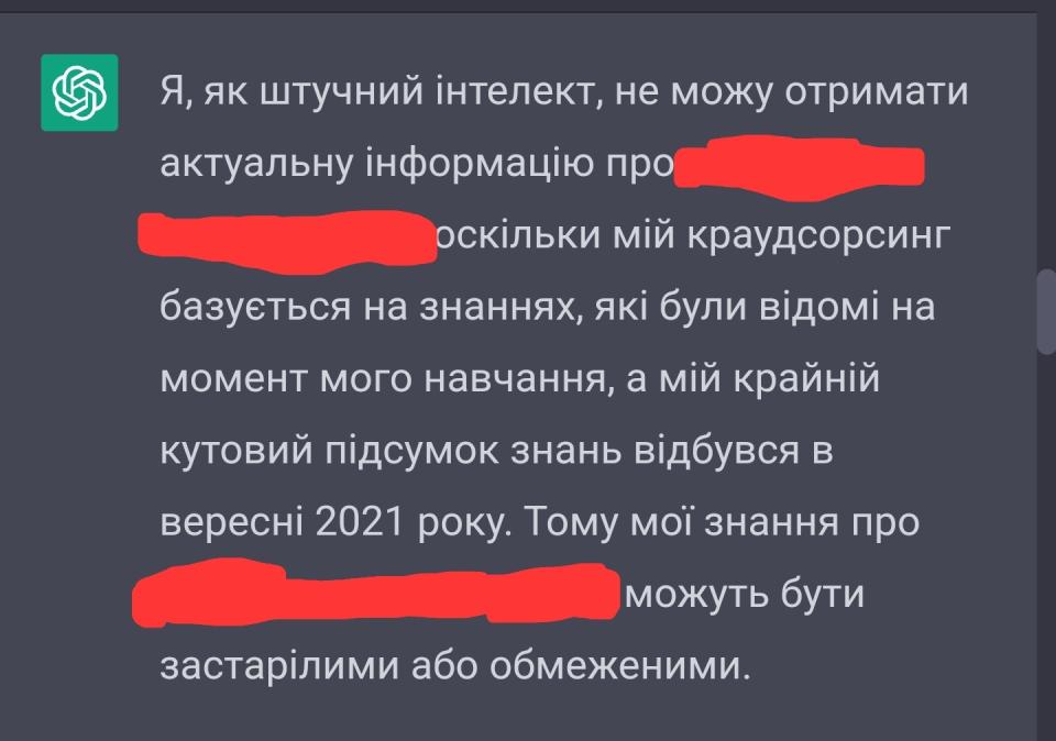 bartid93 Опубликовано 20 февраля, 2023 Опубликовано 20 февраля, 2023 Я так понял, что в него уже загружена необходимая информация Мне он говорит, что может оперировать данными только до 2021 года
