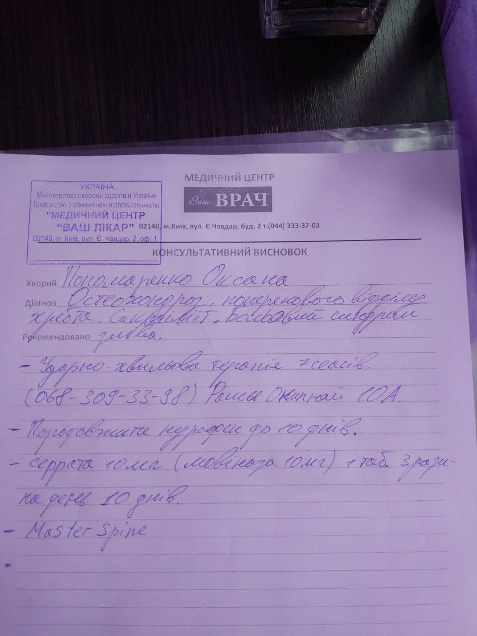 Млд Опубликовано 9 февраля, 2021 Опубликовано 9 февраля, 2021 У девушки разболелось бедро, потом спина и копчик, вплоть до того что сидеть не могла. Сходила на приём к врачу, сделала МРТ, получила диагноз и лечение. Насколько адекватно? Заключение МРТПоперековий лордоз збережений.Тіла хребців звичайної конфігурації, висота збережена; кістковий мозок гетерогенний за рахунок ділянок жирової дегенерації. Субхондральний склероз, крайові остеофіти. Замикаючі пластинки тіл хребців відносно рівні. Міжхребцеві диски: дегідратовані, висота не знижена. На рівні L4-L5, L5-S1 дорсальні випинання до 2,0 мм. Хребтовий канал: передньо-задній (сагітальний) розмір на рівні L4 – 15,5 мм. Передня та задня поздовжні, жовті зв'язки без особливостей. Дуговідросткові суглоби з ознаками артрозу. Спинний мозок розташований в центрі хребтового каналу, не потовщений, структура типова. Конус спинного мозку розташований на рівні L1-L2 та розділяється на корінцеві нитки кінського хвоста, останні без особливостей. Висновок: МР ознаки дегенеративних змін поперекового відділу хребта, незначні випинання L4-L5, L5-S1 м/х дисків. диагноз и лечение Болит уже вторую неделю. Сейчас самочувствие лучше, лечилась до получения МРТ нурофен интенсивом и мускомедом.
