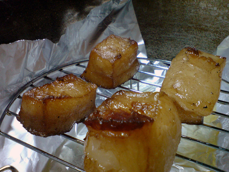 Garon Опубликовано 29 декабря, 2015 Опубликовано 29 декабря, 2015 Эксперимент. Сало копченое в городских условиях. Сало перед копчением необходимо подготовить. Можно с недельку подержать в холодильнике посолив, натерев чесноком и т.п. На ютубе есть способы подготовки к копчению. Я же просто в подсоленную воду, сыпанул перца и того и того, и горошком(черный), лаврушка, и приправу для копченостей. Всего по чуть-чуть. Из отсебятины - забросил шелуху одной луковицы для цвета. Как закипело, убавил огонь чтоб было на грани подкипания и так на 20 мин. Щепы под рукой не оказалось, не оказалось ее и ни в одном из маркетов в округе, только в Кишене какое то невнятное корытце из фольги 9 на 12 и непрозрачное, т.е. сколько там и что там неясно. Зашел в ларек "Охота и рыбалка" - сказали не бывает, но дядька посоветовал заглянуть по соседству в кошачий магазинчик, якобы его родственник так делал и все получилось. В итоге щепа обнаружена в неожиданном применении(на фото) и хоть и мелковата зато пакет см 40 в длину, а не одноразовая чушь с маркета. Далее на дно гусятницы кинул жменьку тех опилок, с верху фольга чтоб не капало и не тушило щепки. Решетка взята из мультиварки. Закрыть крышку - если не плотно прилегает то либо тестом по краям пройтись, либо уплотнить фольгой, или грузок поставить сверху. Огонь на максимум на 15 минут. После выключить и не открывать до полного остывания(часа 2). Запах в процессе вполне умеренный, даже вытяжку не включал. Можно есть сразу но желательно на ночь поставить в холодильник для завершения процессов. Попробовал - бомбей бомбейский. Показать