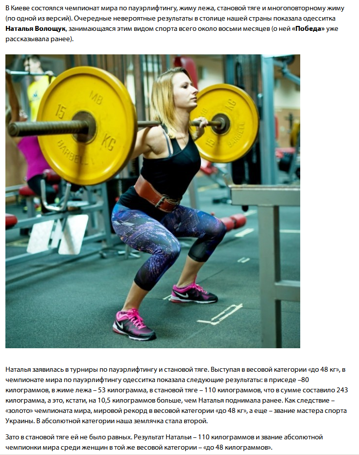 Kashtan Опубликовано 29 ноября, 2015 Опубликовано 29 ноября, 2015 а разве рекорды можно устанавливать вне соревнований? вот так, на выставке... Вопрос интересный. В штатах лучшие соревнования проходят как раз в рамках крупных фитнесс-выставок - хоть какой-то шанс показать себя широкой общественности. Пауэрлифтингуотч уже признал Сарычева рекордсменом, и разместил его рекорд на странице - а это главный авторитет в мире рекордов пауэрлифтинга. Это кстати сняло все вопросы, ибо когда Спото пожал свои 327.5 кг - коллегия Битвы Чемпионов отказались признать это мировым рекордом, усмотрели по видео ошибки во время выполнения, и решили признавать только предыдущй рекорд в супертяжах - 324 кг Мендельсона. В итоге когда на битве чемпионов Сарычев заказывал рекордный вес - ему поставили 326 кг - якобы чтобы бить рекордный вес. И его абсолютный рекорд оказался абсолютным только для битвы чемпионов и его фукнционеров. Разумеется что его рекорд американцы никуда не записали, ибо все признали рекорд Спото в свое время, с его 327 кг. И вот теперь - со своими 335 кг Сарычев поставил точку. Что касается предела человеческих возможностей - Хендерсон на тренировке брал 337.5 кг, на соревнованиях 322, на допинг-контроле, в рамках троеборья. Впрочем - Спото хочет 340 кг взять, а руки у него вроде 63 см были, у Сарычева кстати 60 см. Ну и остается параолимпиец Сиаманд Рахман- который занимается на тренировках с весом в 310 кг, и тоже достаточно молодой, и весит без ног столько, сколько Сарычев.
