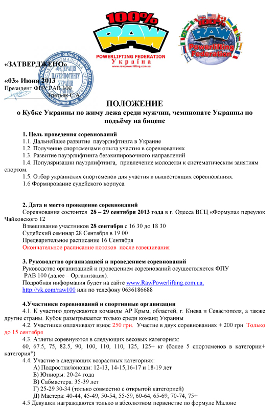 Коцага Вадим Опубликовано 21 августа, 2013 Опубликовано 21 августа, 2013 Закінчено прийом заявок для участі у Відкритому Кубку ВПА Україна. Остаточна номінація Остаточний розклад (змагання відбудуться протягом двох днів)http://wpau-meet.com/timetable-raspysanye/