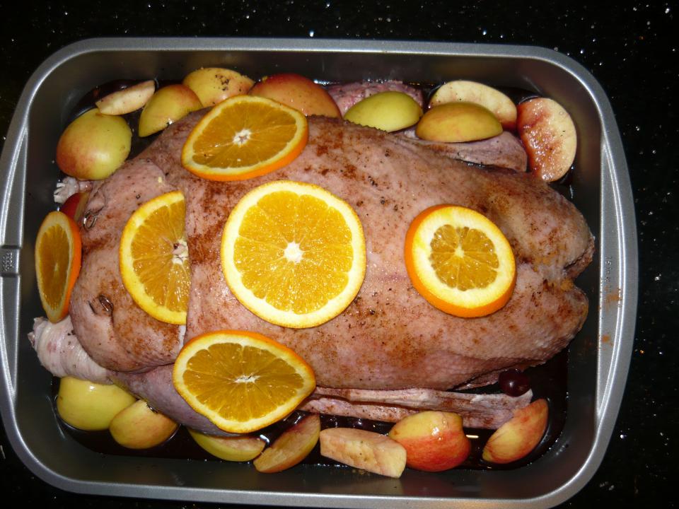 Заноза. Опубліковано: 9 травня 2012 Опубліковано: 9 травня 2012 Это я ставила на пропитку на ночь.))))) Но ты поймешь. Блюдо назвала *Факинг Дак* Это молодой гусь, в середине гуся молодая уточка, ты можешь вдеть ее шейку торчащую с промежности гуся, а в той уточке чего только нет))))))))) То что ты видишь всерху, это не до конца, это на для пропитки. К сожалению, фотографии в готовом виде, сразу с духовки, не успела сделать. Когда стол накрыла, все было сметено. Но воруг этого гуся, который факнутый уткой, лежат еще молоденькие уточки фаршированные фруктами, в том числе-цедра, корица, вишня, клюква, слива, яблоко(но это окружение по-выбору).
