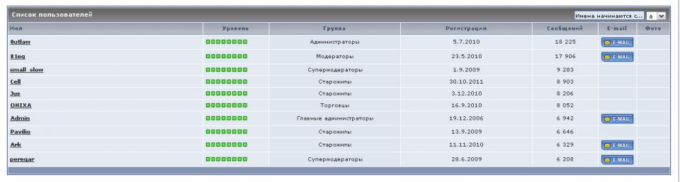 Buttler Опубліковано: 17 серпня 2013 Опубліковано: 17 серпня 2013 Ссылка "Пользователи" над личными сообщениями. Только там нужно поставить сортировку по количеству сообщений в порядке убывания и убрать букву с поля "Имя пользователя". Ты 4-й.