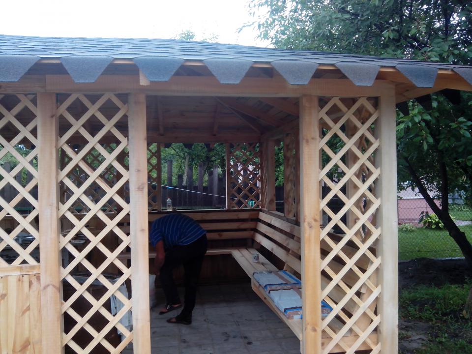 Alexey_ Опубліковано: 29 липня 2015 Опубліковано: 29 липня 2015 Запилил беседочку на даче, для посиделок, мучает вопрос, обрезать или нет? (всмысле мягкой кровли по краям, которая ромбиками свисает)