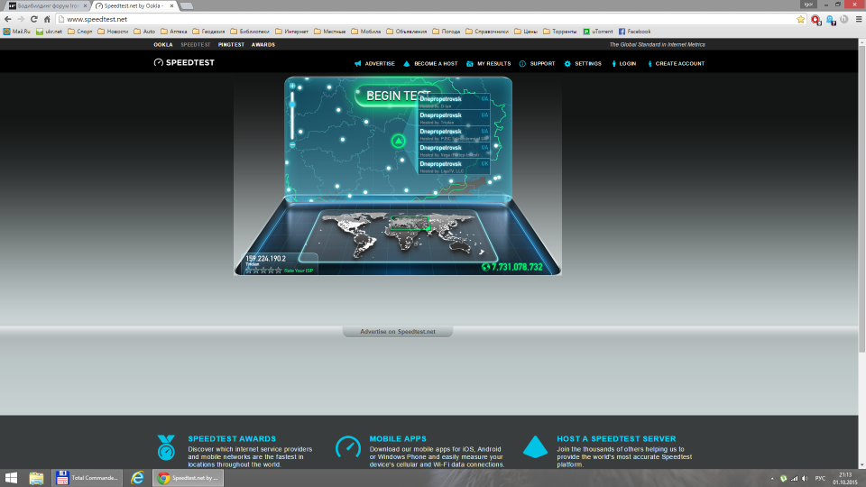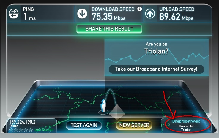 inimak Опубліковано: 1 жовтня 2015 Опубліковано: 1 жовтня 2015 Херасе нормальный.На комнату передает только ) Квартира панелька, обычная 9-этажка знаешь, в каком районе. Сетевой кабель зашит под плинтусом прям к компу с минимальным запасом. Ща принесу, гляну. Это уже будет сетевая карта ограничителем? Ну раз роутер нормальный? Спидтест сам определил местоположение и провайдера, я ничего не выбирал Да. Но сетевые карты на 10Мбит уже лет 10-15 не в ходу)), счас все больше 1Гбит или 100Мбит как минимум. Не нажимай " Begin", наведись мышкой на зеленый треугольник в центре, выскочит список провайдеров. Показать