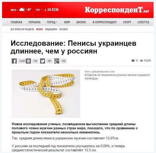OlegRO Опубліковано: 25 грудня 2015 Опубліковано: 25 грудня 2015 Одна компания решила выйти на рынок производства презервативов, но не могли решить, какую длину презерватива выбрать, чтоб потребителям больше всего подходили. Наняли несколько маркетинговых компаний, чтоб исследовать вопрос. Когда получили результаты, то вышло, что все маркетологи, кроме одной фирмы советовали выпускать презервативы длиной 25 см. Лишь одна фирма рекомендовала 13 см. Топ менеджеры заказчика их вызвали и спрашивают, почему, собственно, у вас не такой результат, как у всех? А те отвечают: «видите ли, все спрашивали, а мы — мерили...» откуда это гейское добро тащат те кто срывает покровы. группа в ВК "фак бикини"