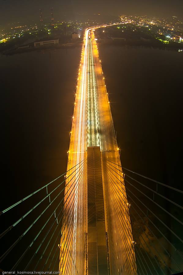Garon Опубліковано: 23 березня 2016 Опубліковано: 23 березня 2016 Ночь и фантастический весенний рассвет на верхушке Южного Моста. Мост был открыт в 1990 году и считался самым современным в СССР. Тогда на церемонии открытия первый секретарь КПУ назвал его гордостью Украины и Киева. Задача моста заключалась в соединении центральной части Киева с левобережными районами и главным киевским аэропортом - Борисполем. Сегодня - это привычное место скопления пробок, где левый берег добирается на работу на правый, а правый - на левый. Технические данные моста нельзя назвать выдающимися, но он является самым высоким вантовым мостом в Украине. Его длина составляет 1256 метров, ширина - 41 метр, высота - 133 метра. (с).