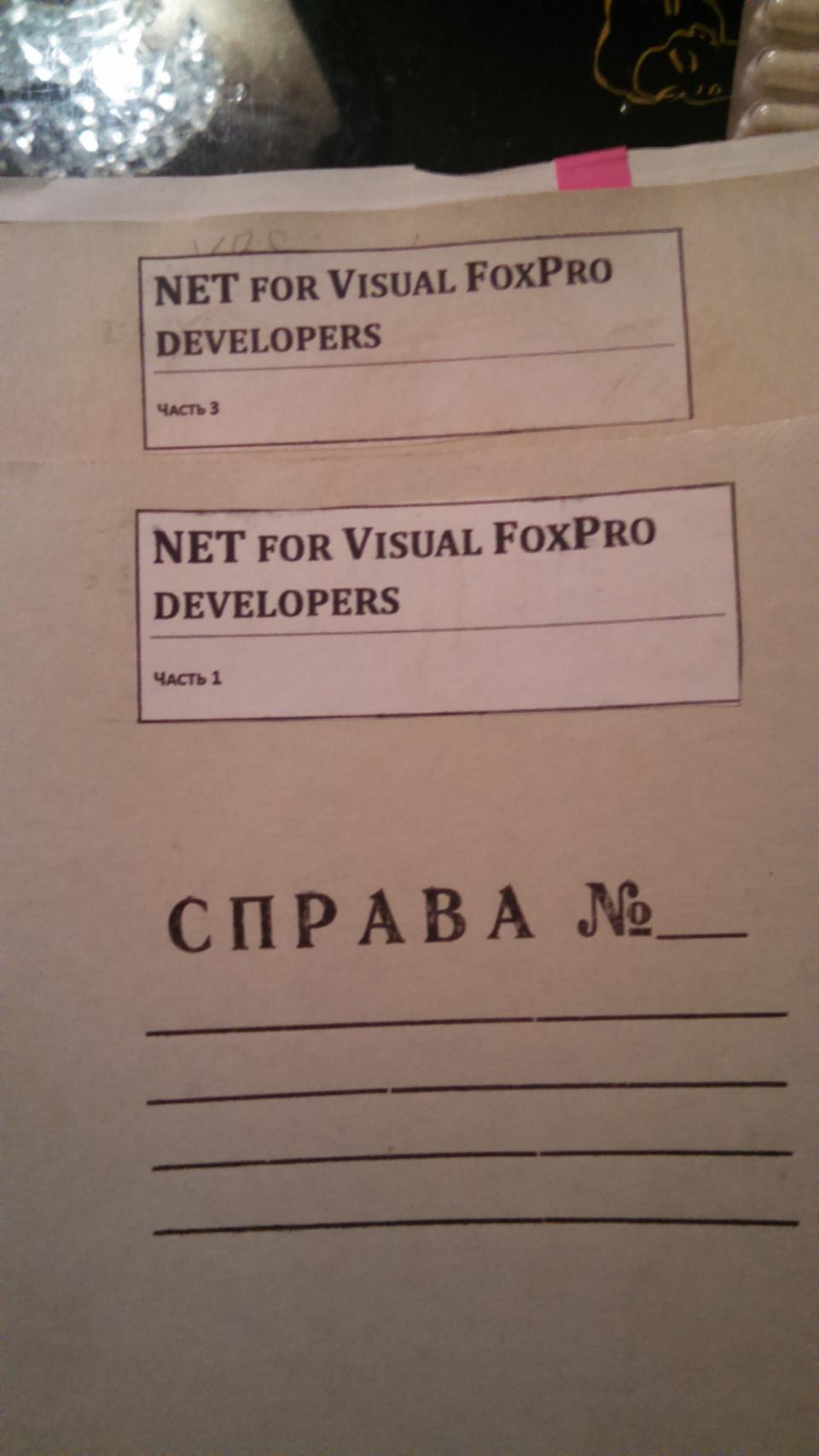 andreyyy Опубліковано: 4 лютого 2018 Опубліковано: 4 лютого 2018 Кирилл, рылся в запасах старых бумажных книг по тематике обучения. Нашел 2 по HTML, одну "Сборник рецептов .ASP", есть большая "Visual Studio 2010" (не учебник, а справочник) Но это все фигня, просто так упоминаю, что имеется из бумаги. А главное, что заинтересовало - нашел вот что Показать Это я давно распечатал и подшил в папки вот такую книгу Англоязычная, правда, но очень легко написана, я читал без словаря. Не 100%-е понимание, но в основном в контексте выруливал то, о чем речь. В общем, это извращенная идея о прокладке срединного уровня на VFP. Разные модули делаются как dll, которые подключаются к проекту .net Я заинтересовался не как цель научиться делать такие приложения, а как, возможно, более легкий и оптимальный для меня путь в постепенном понимании .net, отталкиваясь от уже известной среды. Ну т.е. хочу начать чтение с нее. Понятно, что я не буду стремиться заменить, например, ADO писаниными длл-ками на ВФП (это я так вижуал фокспро обзываю.). Я просто думаю, а не начать ли знакомство именно с этого ракурса. Чтобы сначлаа понять устройство самих проектов на первом этапе
