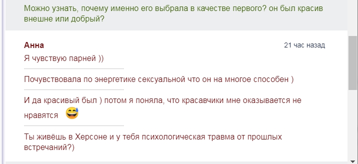 my_fair_lady Опубліковано: 24 червня 2020 Опубліковано: 24 червня 2020 в качестве первого в жизни мужчины для секса?))) огоспаде, кого только не выбирают лет в 16-17 от отсутствия опыта и мозгов :connie_xmas-moose: