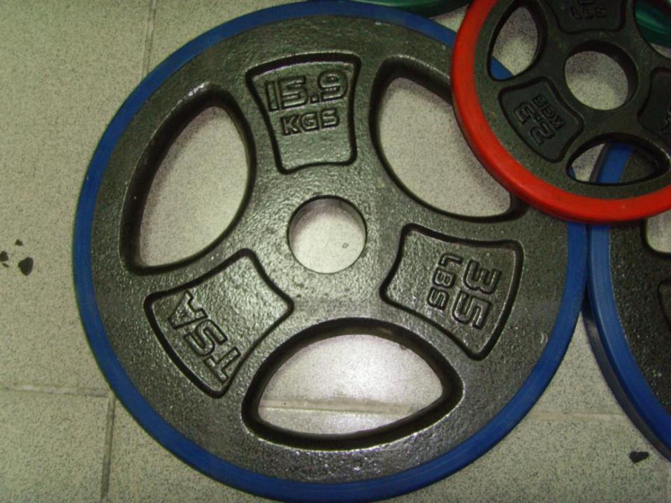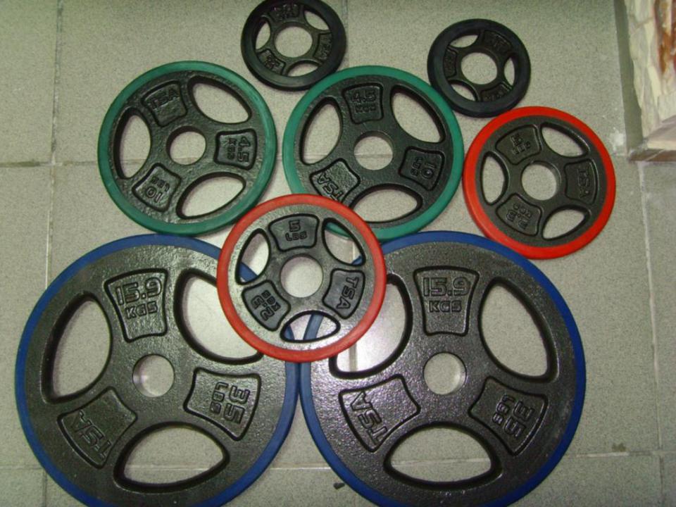 Zavhoz Опубликовано 22 июня, 2010 Опубликовано 22 июня, 2010 Продам обрезиненные цветные блины на олимпийскую штангу, производитель Alex(Тайвань). Качество блинов очень хорошее: есть удобные отверстия для хвата, по кромке толстый слой качественной цветной резины, а по центру резины нет - чтоб не обдиралась, когда на штангу натягиваешь. Берёш в руки и чуствуешь - вешь. Единственный недостаток они фунтовые! То есть на них отпечатан вес и в КГ и в фунтах и эти веса для нас непривычные. 1 комплект – 47,6 кг. 2шт. по 15,9 кг (35 фунтов) 2шт. по 4,5кг (10 фунтов) 2шт. по 2,3кг (5 фунтов) 2шт. по 1,1кг (2,5 фунтов) Цена - 890 грн за комплект – это меньше 19 за кг. Продаю весь комплект целиком. Если надо, могу продать новый олимпийский гриф для них по цене от 425 грн за шт. Пишите kievpost@gmail.com