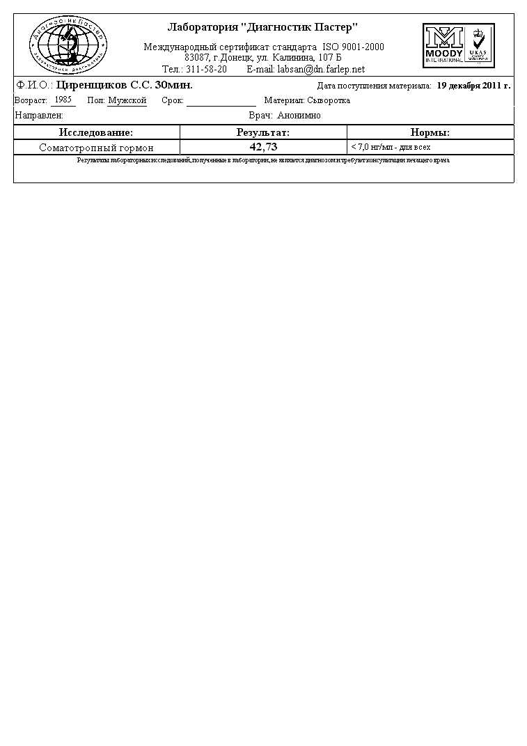 MaJ0r Опубликовано 23 декабря, 2011 Опубликовано 23 декабря, 2011 Сергей, ты использовал обычную воду для инъекций. А через сколько дней после приготовления р-ра сдал анализы?