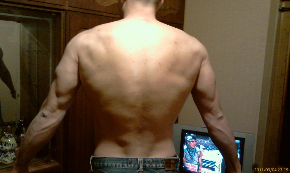 RUSEA Опубликовано 4 марта, 2011 Опубликовано 4 марта, 2011 (изменено) RUSEA, спина и трицепс :JC_doubleup: спасибо, как ты писал "свет удачный" нельзя штангу на шейный отдел укладывать, при повороте головы боли есть? А спина приличная, да, не пойму чего так про бицепс расстроился вот его я и не сфоткал, потому что он исчез, "исчезает на глазах прям, завтра не будет бисепся". выше шея, ниже падает, сутулиться нельзя. только туда. может надо было Z брать, може я не стандарт, как мне в Турции на рынке сказали однажды. попробую потерпеть, в молодости мог, может действительно привыкну. Изменено 4 марта, 2011 пользователем RUSEA