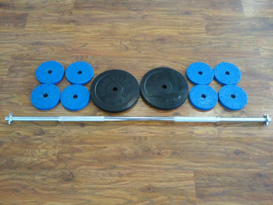 Zavhoz Опубликовано 28 февраля, 2011 Опубликовано 28 февраля, 2011 Продам штангу 44кг Гриф: хромированный, диаметр 30мм, длинна 150см, вес 7,8 кг. Состояние нового. Диски: 2 шт по 10кг, обрезиненные, состояние новых. 8 шт по 2 кг, в пластике, состояние - немного помучаные :) На 2-3 из них есть небольшие трещины, но дальше не расслаиваются, так что с ними все Ок. Фото прилагаются. Стоимость из расчета 15грн за кг дисков и 155грн за гриф. Итого 695грн. Без торга. Продаю комплектом. Самовывоз с Академгородка (Киев). (050)381-57-88 kievpost@gmail.com