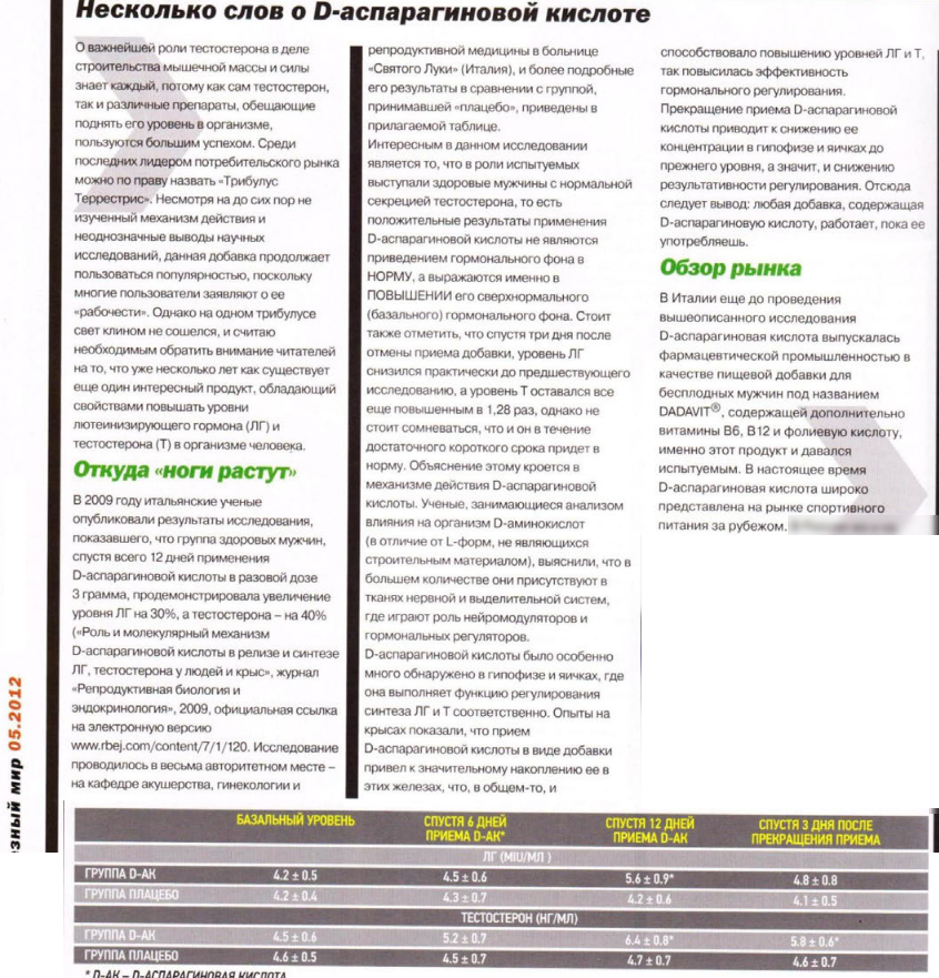 Kashtan Опубликовано 20 декабря, 2012 Опубликовано 20 декабря, 2012 В новом (№6) номере ЖМ есть статейка о бустерах эндогенного тестостерона. Думаю, интересно, на каком месте ДАА, а может будет раскрыта тема разных форм ДАА? Оказалось, что вообще антиоксиданты - бустеры в целом, (полный список в упомянутых в статье: кломинфенцитрат, тамоксифен,цинк (3 мг на 1 кг тела), магний, пчелиное маточное молочко, ашваганда, витамин Д, селен, Н-ацетилцистеин) ни слова о трибулусе, ДАА, лонгджеке, ДИМ и прочее и прочее. Правда, написано, продолжение следует. Но что-то не верится мне, что автор уйдет дальше литературы конца 90-х. А вообще анализируя содержание последних номеров - этот список странным образом повторяет последние продукты спонсоров-рекламодателей журнала....