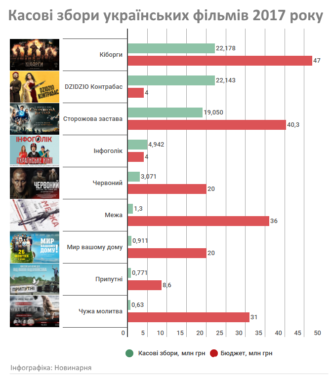 Дагот Опубліковано: 27 січня 2018 Опубліковано: 27 січня 2018 Режисер фільмів “Кіборги” та “Чужа молитва” Ахтем Сеїтаблаєв у коментарі “Новинарні” зазначив, що жоден український фільм, бюджет якого перевищує10 мільйонів гривень, у прокаті не окупився. Головна причина цього – мала кількість кіноекранів. Якою б якісною не була дорога національна стрічка, наразі вона фізично не може “відбити” свою вартість у 380 кінозалах із сучасною апаратурою, що є в Україні, і при наявній платоспроможності населення. https://novynarnia.com/2018/01/26/pidsumki-...sovimi-zborami/