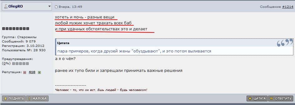 Outlawif Опубликовано 22 января, 2015 Опубликовано 22 января, 2015 я писал изначально, что при определенно созданных условиях и ты и все оттрахают самку. Нет, ты написал буквально "самец стремится спариваться со всеми самками", я ответил, что не со всеми, а отвечающими определенному критерию. В обоих случаях речь шла об обычном среднестатистическом самце человека в естественных условиях обитания. Если его поместить на необитаемый остров, накачакть коксом и вколоть виагры - это не совсем чистый эксперимент. Повторюсь, тестостерон не играет ключевой роли при выборе самки. Точнее, вообще не играет роли. Он свидетельствует о том, что ты осознаешь, что это самка, и более ничего. За мотивацию отвечает в первую очередь дофаминергическая система. И это утверждение я могу подкрепить десятками и сотнями научных статей. И ты можешь, если дашь себе труд поискать. Я уж не говорю о том, что в эксперименте, на который ты дал ссылку, вообще не затрагивается проблема выбора. Да и выводов вообще по сути нет. Ты дал ссылку на статью, и это явно даже не исследование, а всего лишь эксперимент. В нем утверждается: - любые женщины, которые тебя окружают, провоцируют выборс тестостерона. - вначале еще утверждается, что повышенный уровень тестостерона провоцирует мужчину больше флиртовать с незнакомыми женщинами. Я не знаю, откуда ты сделал далеко идущие выводы, что мужчина готов тр@хнуть всех вокруг невзирая на привлекательность, не понимаю, с чего ты приписываешь уважаемому человеку то, чего он не говорил по части мотивации и выбора. Ничего подобного в статье не сказано. Та ну, она просто пухленькая, на острове с едой напряги будут, похудеет и будет ничётак деваха)) А лишнюю кожу куда девать? Надо лопать пока не похудела, ящитаю, чтобы сочнее была.