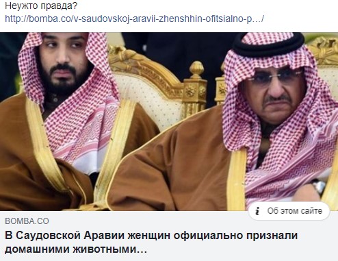 Outlawif Опубліковано: 29 листопада 2019 Опубліковано: 29 листопада 2019 Было такое пару лет назад. Но это не "официально", это какие-то там ученые сделали вывод, что раз женщина "млекопитающее", она должна быть наделена правами животных. То есть, до этого у нее прав было еще меньше )) Но там сейчас идет прогресс потихоньку. Женщинам уже разрешили водить машину, служить в армии, и вот в этом году недавно даже путешествовать отдельно без мужа. Феминизм короче процветает.