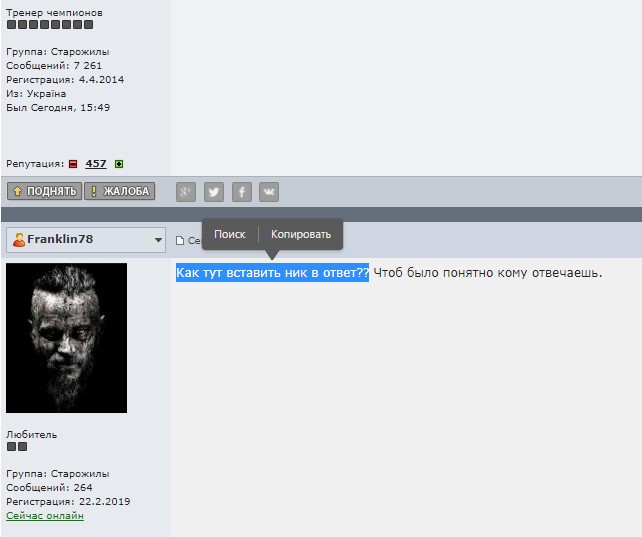 Franklin78 Опубліковано: 3 червня 2021 Опубліковано: 3 червня 2021 Как тут вставить ник в ответ?? Чтоб было понятно кому отвечаешь.