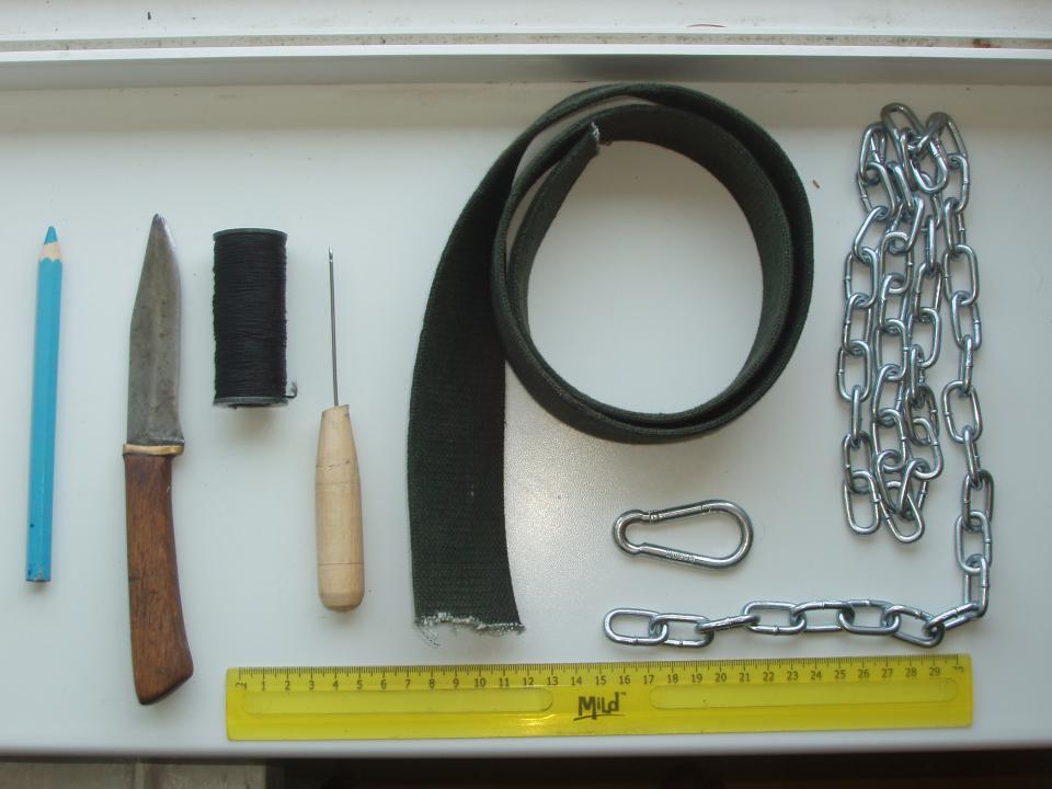 Арис Опубликовано 18 июля, 2011 Опубликовано 18 июля, 2011 (изменено) Добрый день. Присматривался к готовым изделиям, которые призваны сделать тренировку шеи удобней. Все они универсальны и просты в исполнении. Решил проанализировав малочисленные отзывы, пошить под себя. Отмеченные минусы готовых изделий: 1. Ремни из синтетических материалов; 2. Лента, используемая в качестве несущего элемента более 4.5 см; 3. Универсальность в размерах; 4. Лямки с полукольцами затрагивают уши; 5. Цена вопроса 100-120 гр. Условные плюсы пошитого индивидуально: 1. Применен ремень ХБ; 2. Смешен центр крепления подвеса с грузом; 3. Индивидуальный пошив по своему размеру; 4. Цена вопроса 38-42 гр. При выборе ремня для пошива не следует брать ремень шире 45мм, более широкий ремень не прилагает плотно к голове. Берите ремень из ткани ХБ, он приятней к телу. Средняя цена подобных ремней от 7.5 гр до 10 гр. Вместо полуколец сознательно применены карабины, так как, расположив их более широкой частью вперед, обеспечиваем смещение груза от ушей. При разметке поперечного элемента тоже учитывайте, где он будет проходить относительно ушей. Все по месту и индивидуально. Задний продольный элемент служит исключительно для стыковки основного пояса. Можно его не делать, а прошить горизонтальный пояс другим способом (внахлест). Сегодня ходовые испытания в зале. Примерная смета: ремень 45мм 1.2 м = 12гр цепь 1м = 14 гр карабин 6 гр *2 = 12 гр нитки капрон = 5 гр Всего: 43 гр. Изменено 18 июля, 2011 пользователем Арис